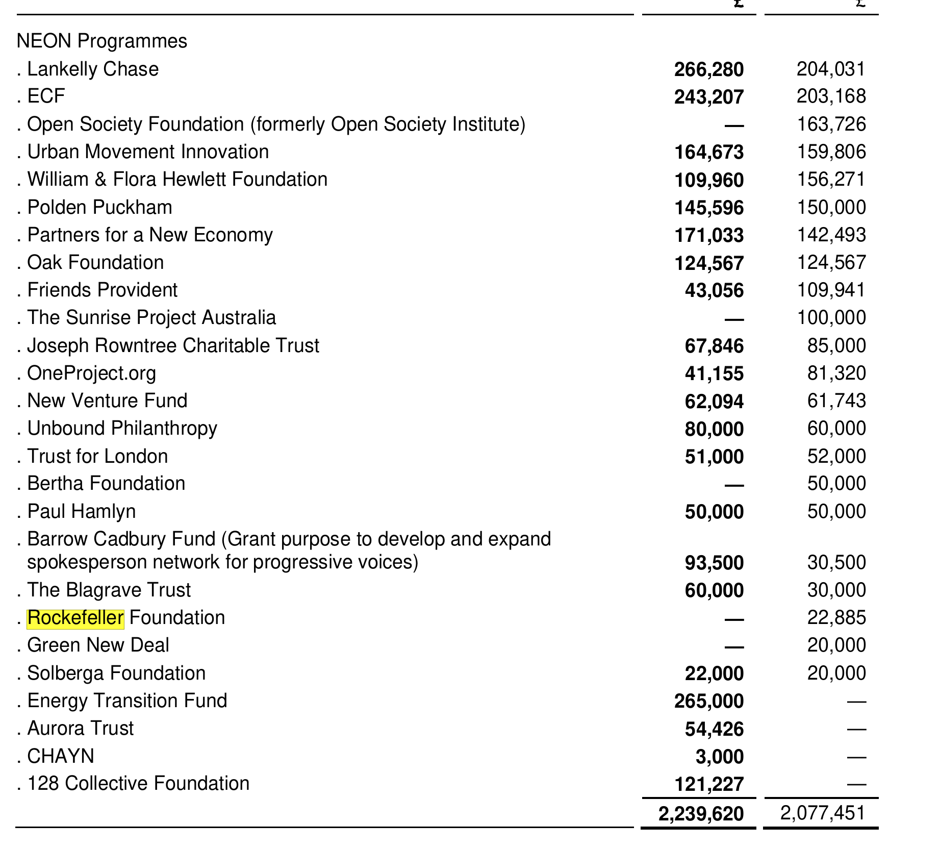 Including the Open Society Foundation, the Rockefeller Foundation, Green New Deal, Hewlett and Flora Foundation.